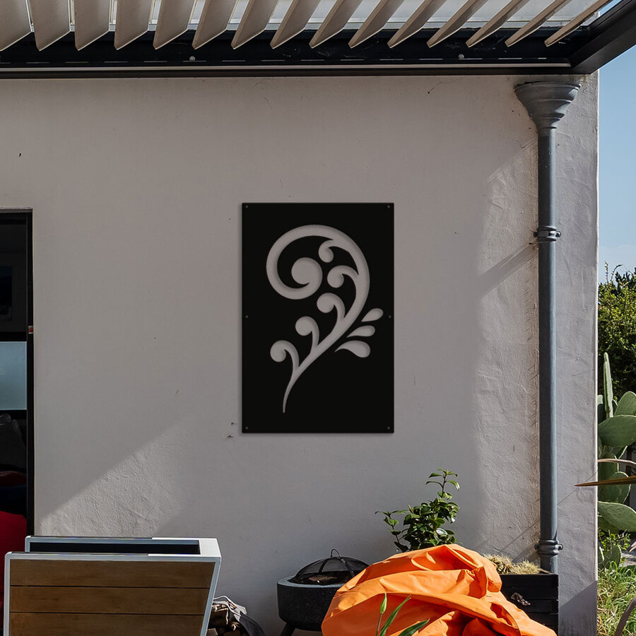 This large outdoor Koru Stencil wall art in Black is inspired by an unfurling fern frond. In New Zealand, the Koru represents new beginnings, growth, and peace — making it a meaningful feature for your garden, entertainment area, or entryway. Each piece is crafted from highly durable, weather-resistant ACM (Aluminium Composite) and finished in a gloss white or black powder coating for a sleek, contemporary look that complements both natural and architectural surroundings. (Main Picture: Size 2 - 1300mm x 780mm)