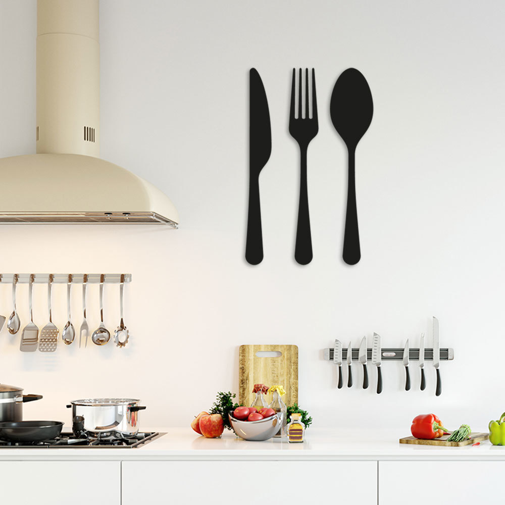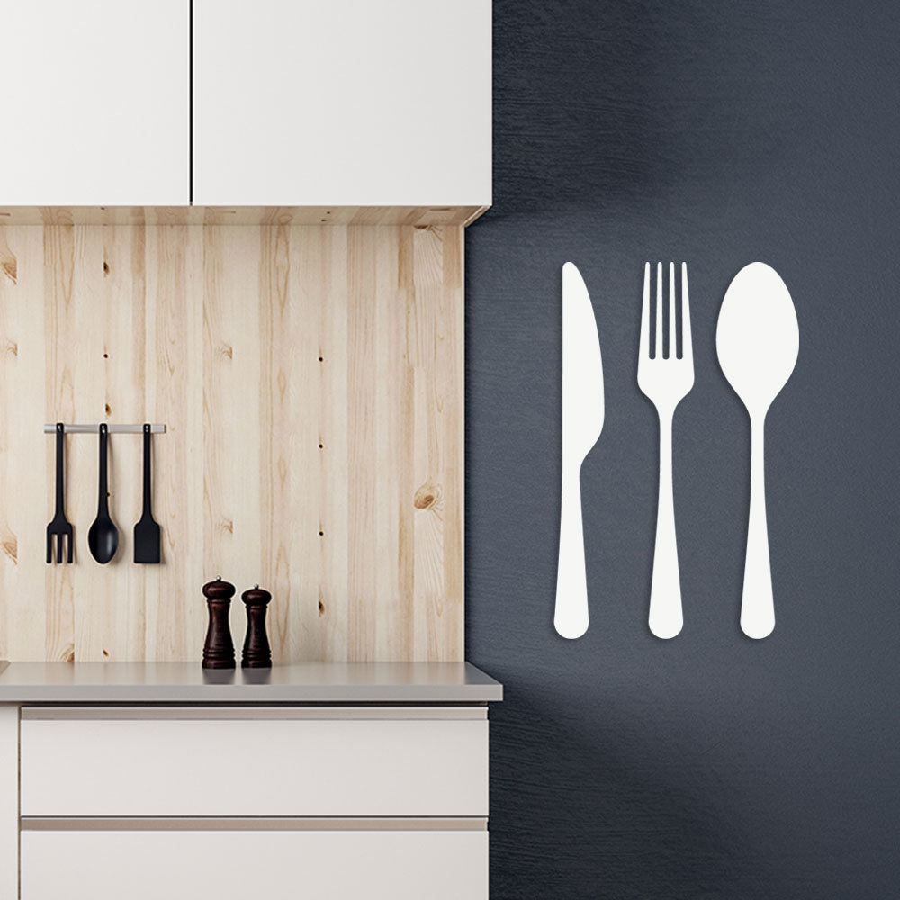 This large knife, fork and spoon set will add a touch of interest to your kitchen or outdoor dining area. Fine for both interior and exterior applications and with a wipeable gloss finish, this cutlery set will not only be easy care, it will last the test of time and will certainly be a talking point for guests visiting your home or office. (Pictured: Size 2 - 580mm H x 375mm W)