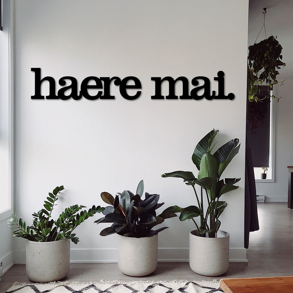 A fantastic Kiwiana sign to welcome visitors to your home of office. Haere mai translates to "come" in Maori. These large scale acrylic signs will look amazing on a wall, they're made of glossy acrylic, which makes them great for indoor or outdoor use and they're easy clean. (Pictured: Colour Black, Size 2 - 235mm H x 1500mm L)