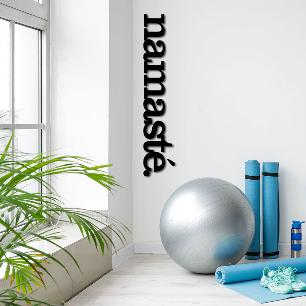 Namaste is a Hindi greeting for "hello." It is commonly used to express gratitude for kindness given. This gorgeous acrylic wall sign is available in black or white and in 2 different sizes. Use at home or as a feature in the Yoga studio. (Pictured: White, Size 2 - 250mm H x 1.4mtr L)