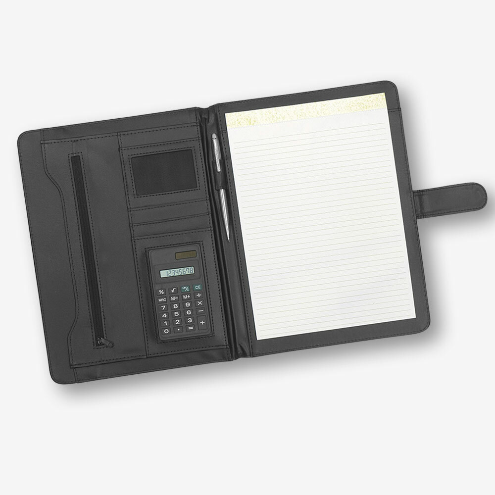 - Comes with writing pad, pockets, calculator (pen not included)