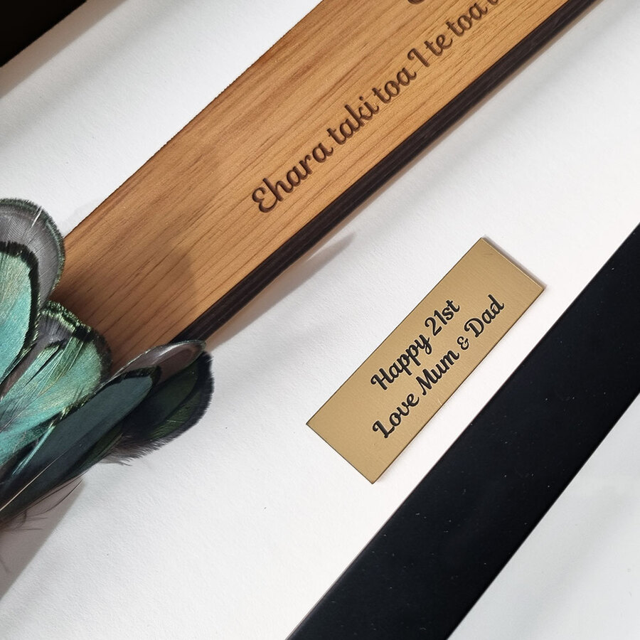 Personalise it with a name and a short message to mark a special occasion. Whether it's for a 21st birthday, graduation, anniversary, or even as a recognition award, this framed taiaha honours the recipient with meaning and mana.