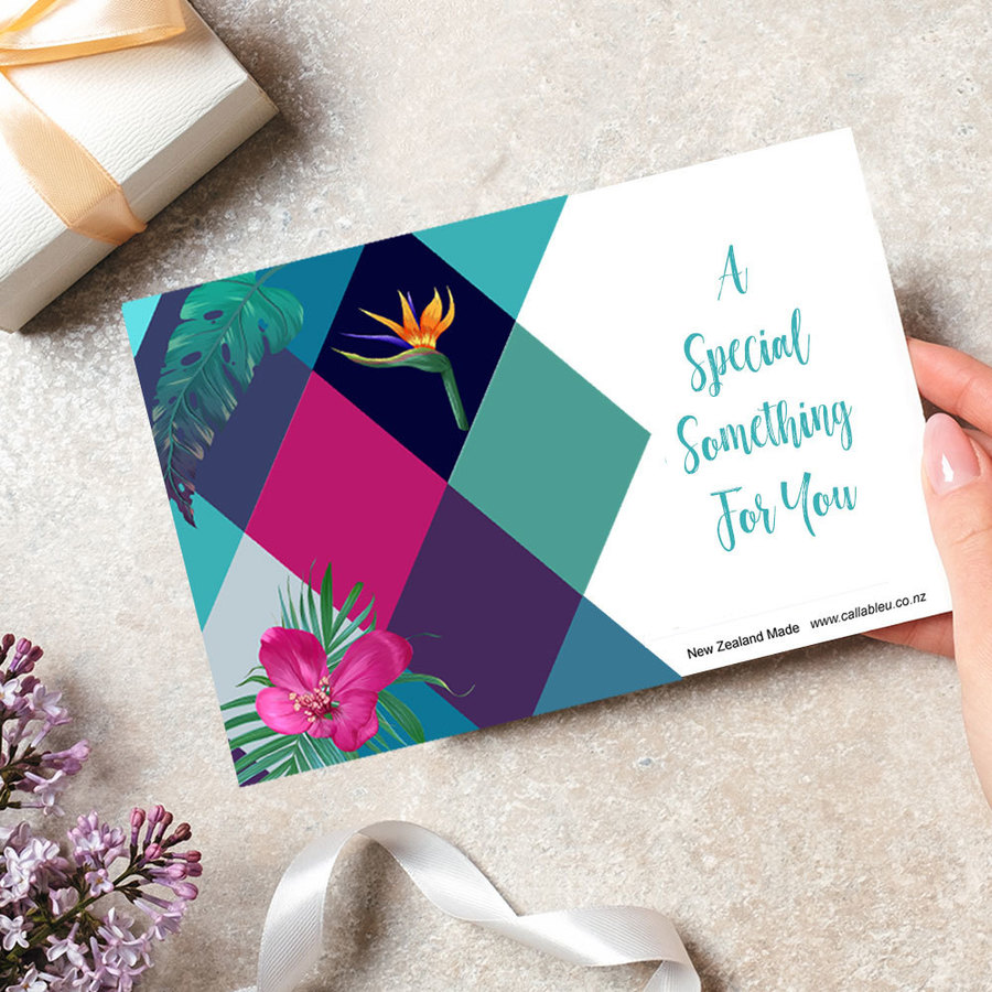 A beautiful Gift message card which says, "A Special Something For You." Plenty of space on the rear for you to write a message or leave as is.