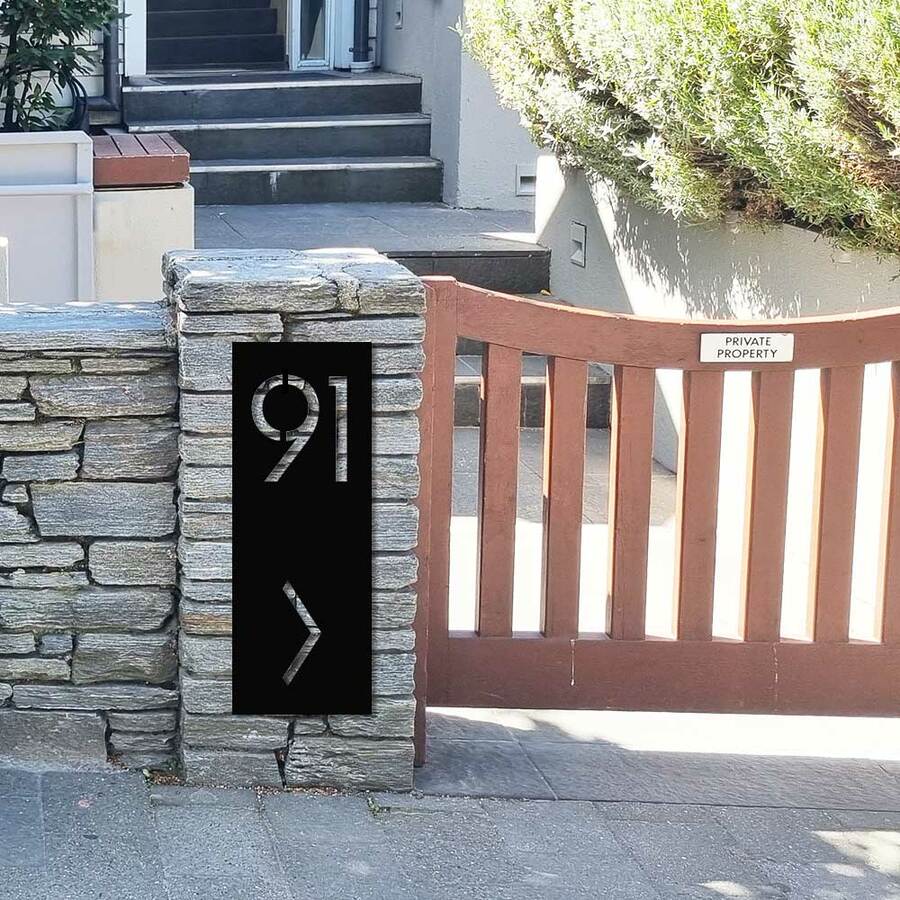House Number Sign - Stencil Number Rectangle Vertical with Arrow