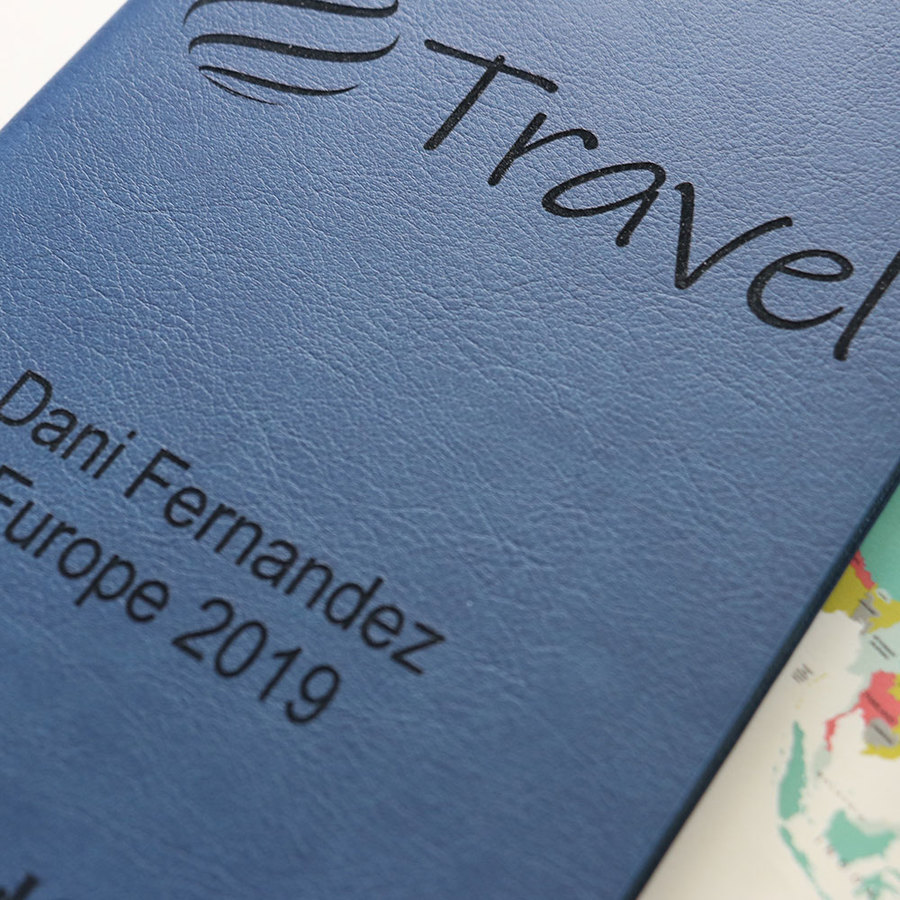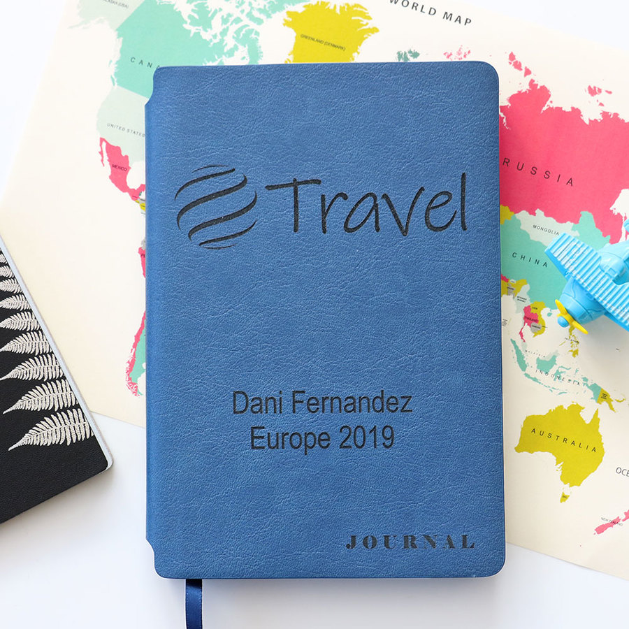 A travel journal is a great way to keep lists of what you plan to do on a trip as well as record all of those amazing things you saw and did. These very handy Navy imitation leather journals can be personalised with details such as your name and travel destination, don't leave home without it.