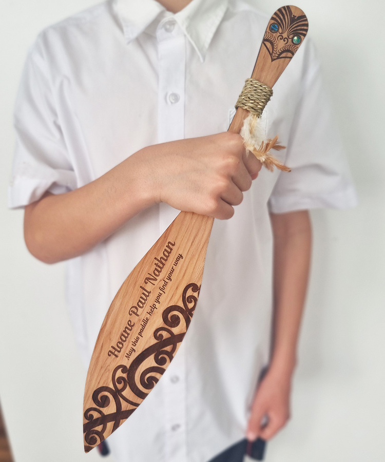 A beautifully designed Maori Canoe Paddle (Hoe) is one of our alternatives to a 21st key or the Paddle can be used for any special occasion including 50th or 60th Wedding Anniversaries or Birthdays, Graduations or even awards.