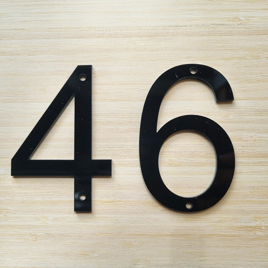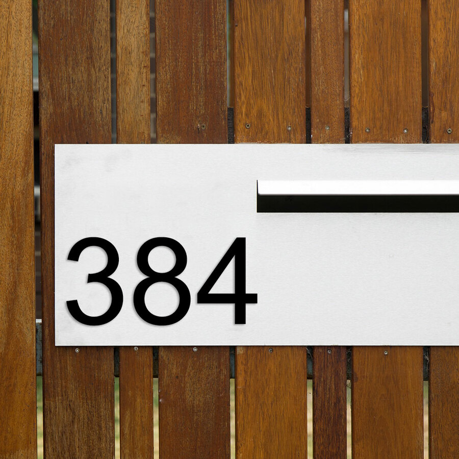 Modern Street Numbers for your house, business, fence or letterbox. Made from Black or White acrylic and available with or without screw holes or with a Peel & Stick Adhesive.